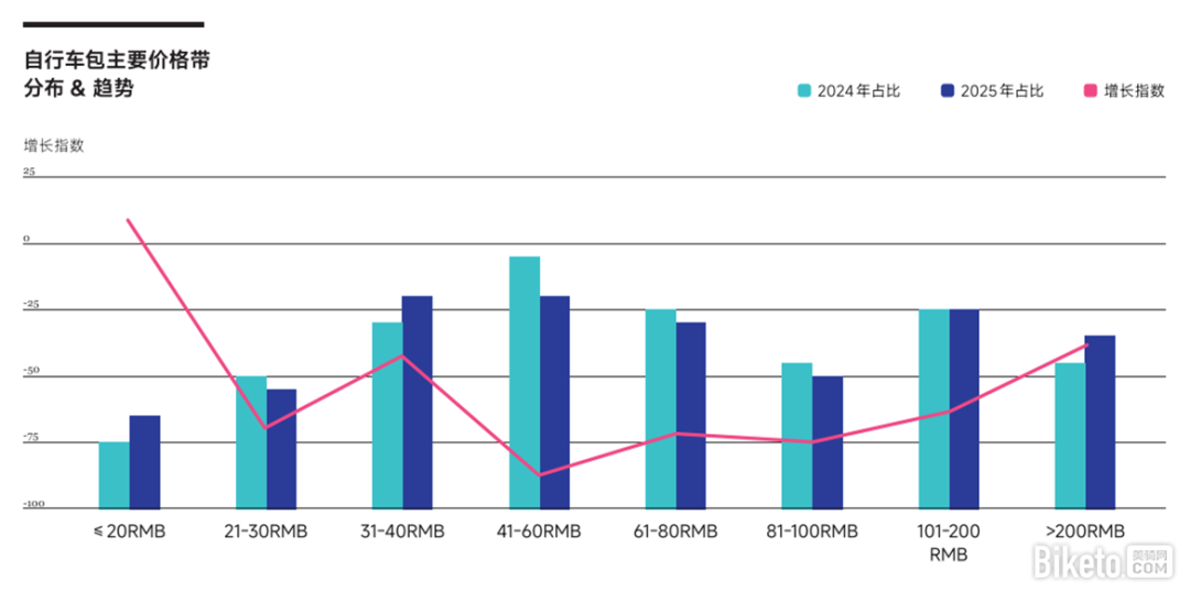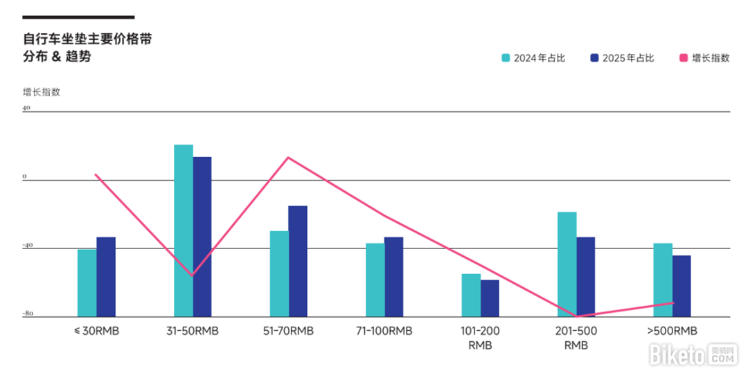 随着公路车热度降温,自行车配件市场的结构也发生了变化。此前随公路车热潮兴起的骑行头盔、骑行眼镜等品类的市场规模出现大幅萎缩,而骑行裤、骑行上衣等服饰类产品,码表、车灯等功能性装备,以及自行车坐垫、自行车包等基础配件,更接近日常使用场景,成为多数用户的必备品。从长期趋势来看,一些细分小众品类展现出较强的成长性。手机支架、轮组、脚踏等既能提升骑行体验又方便个性化改装的产品较受欢迎,适配家庭出行场景的儿童座椅也持续走俏,反映出用户在骑行消费上的实用化、个性化趋势。